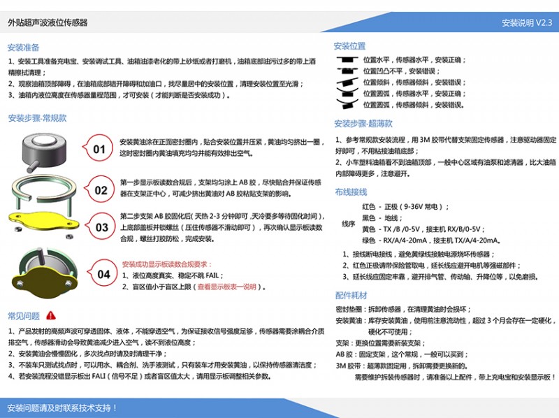 ?安裝時需保證車輛停靠在平坦路面,且油箱內液位高度大于傳感器盲區值;